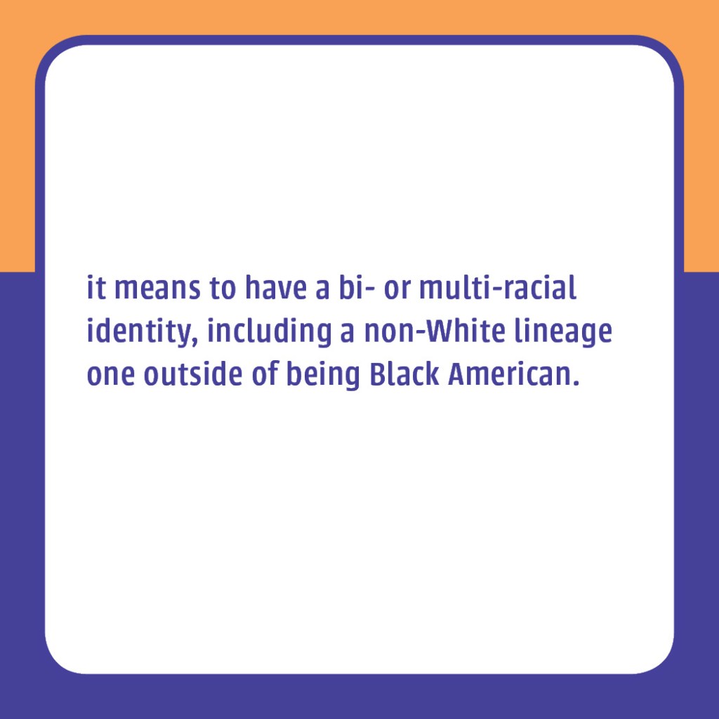 This doesn’t even begin to answer the question of what it means to have a bi- or multiracial identity, including a non-White lineage one outside of being Black American.”